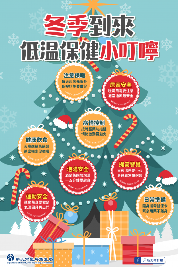 「低溫來襲勤保健,起床加件保暖衣」、「一氧化碳毒害多,天冷門窗勿緊閉」